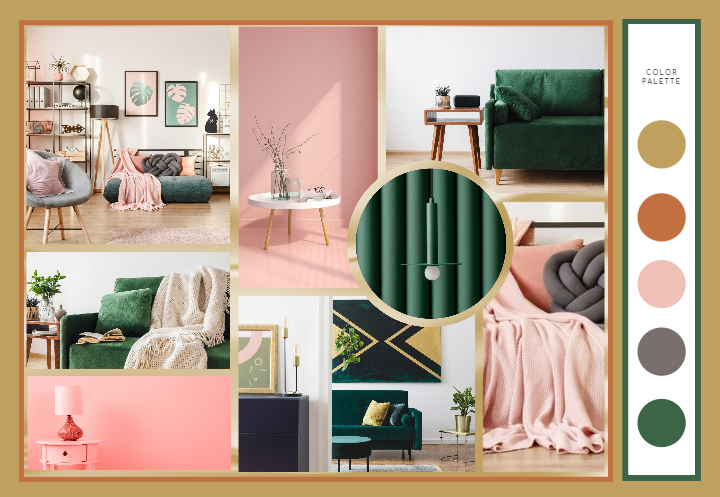 2. Planche d’inspiration, pour changer de décor selon un style ou un thème (couleurs + matières + matériaux)